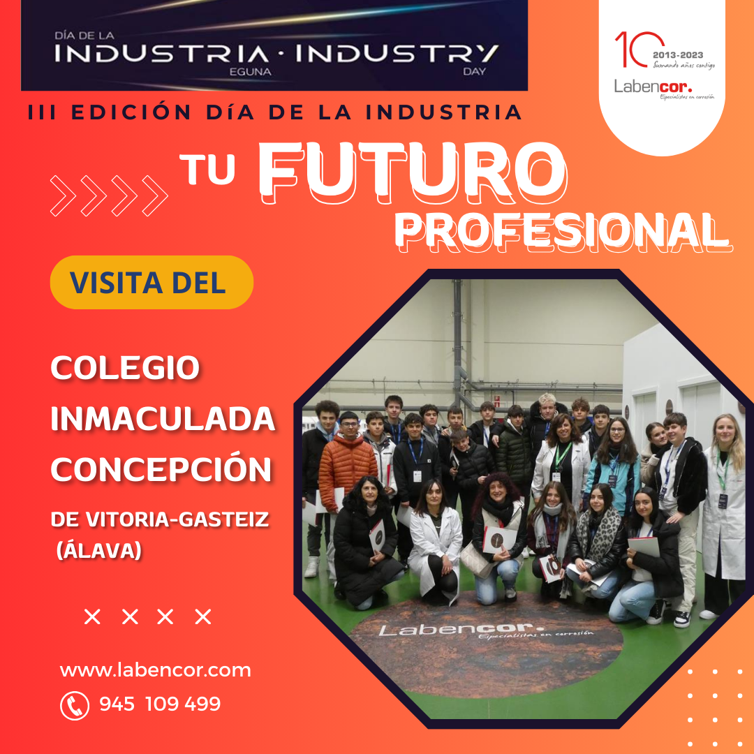 En el día de hoy, 10 de diciembre, con motivo de la III EDICIÓN DíA DE LA INDUSTRIA/INDUSTRIA EGUNA/INDUSTRY DAY, nos complace haber recibido a un grupo de 19 estudiantes de 4º de ESO del Colegio Inmaculada Concepción de Vitoria-Gasteiz (Álava).